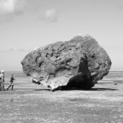 近年は沖縄に何度となく通い、過去の津波により浜辺や陸地に乗り上げた巨大な岩「津波石」を撮影し続けている。1771年に起こった明和の大津波や約600年で起こり続けている津波によって、陸地に上った岩には、民間信仰の対象になっていたり、樹が生えて森になっているものがあるという。本作の発端となったのが、震災後の被災地で、津波で打上げられ集落のなかに残された一隻の船が、それを保存するかどうかの内外の識者による議論の末、結局2013年に解体されたという出来事だ。