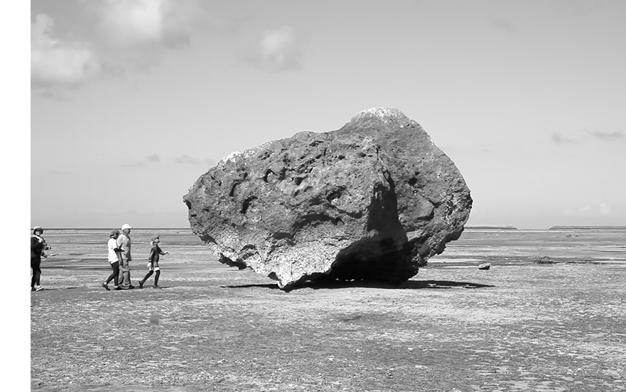 「僕はその土地にどう残すか、ということに重要性があると考えていたんです。その船が100年後に残っていたとしたら、人々はどんなふうに出会うのかと考えて悶々としていたときに、ちょうど沖縄で250年くらい前の津波で乗り上げた岩が、現在も生活や自然に関わりをもっているということを知って興味を持ちました」